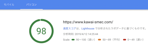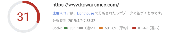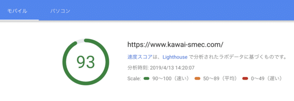 それでは実際のGoogleスピードの点数を見てみましょう。